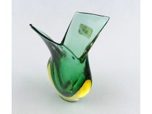 Zöld színű jelzett cseh sommerso művészi üveg váza 16.2 cm