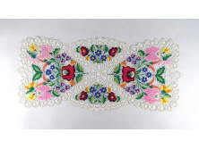 Régi gazdagon hímzett kalocsai mintás csipke terítő 62 x 28 cm