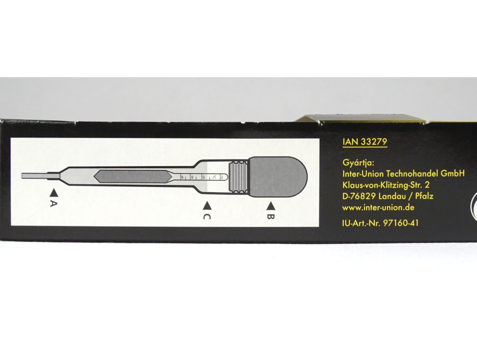 Eredeti dobozában található, német gyártmányú, egyszerű, otthoni használatra szánt gépjármű hűtőfolyadék fagypont kalibráló eszköz. A csomagolás hátoldalán a magyar nyelvű használati útmutatója megtalálható. Többször használható!