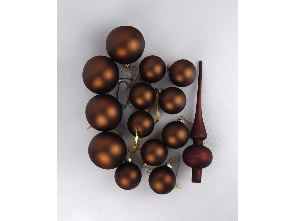 Régi, szép állapotú, óarany színű üveg karácsonyfadísz, üvegdísz csomag, 14 darab egyben.