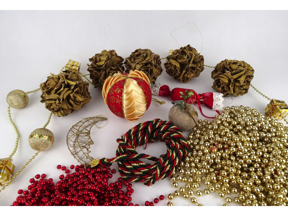 Arany és piros színű karácsonyfadíszek vegyes csomag 13 db