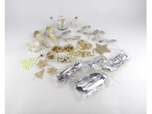 Karácsonyi dekorációs kellékek, szalagok, karácsonyfadíszek, papír, textíl, műanyag és termésből készült díszek, valamint dekorációs tárgyak. Vegyes csomag.