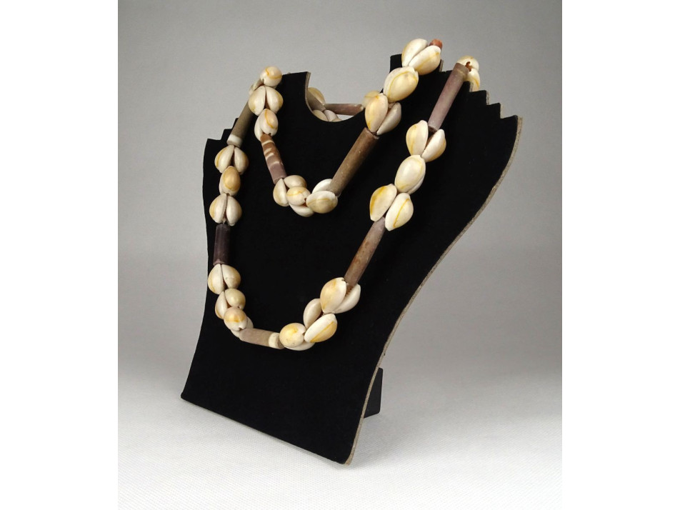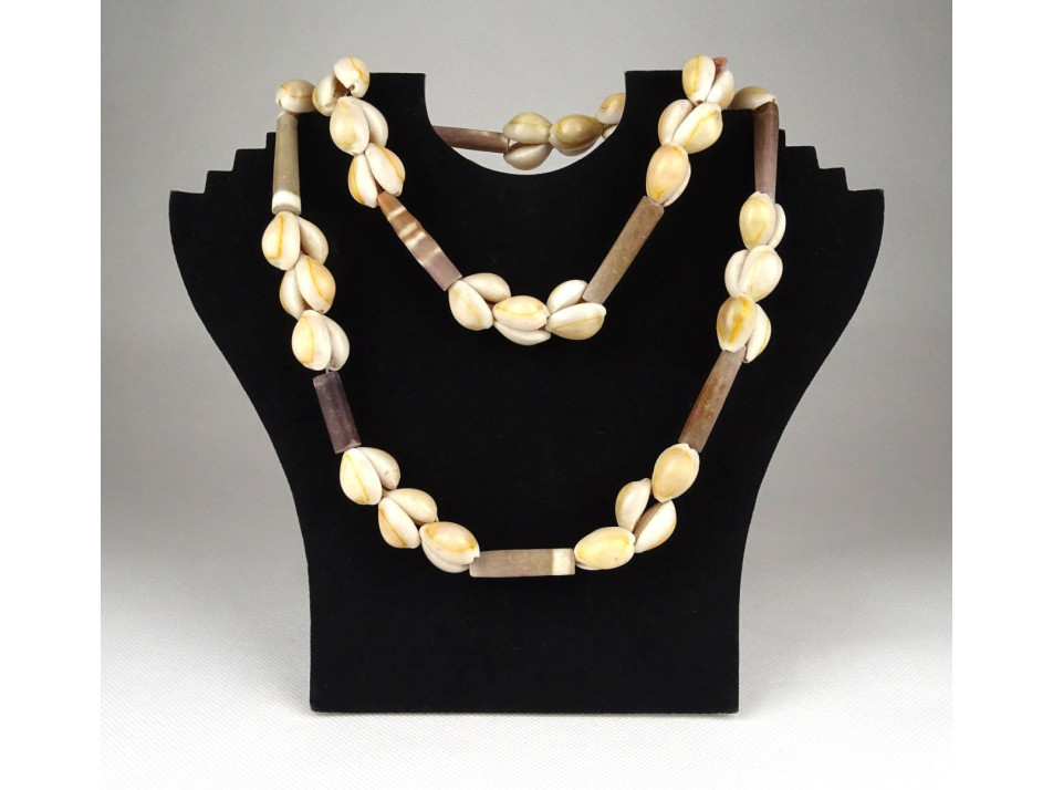 Tengeri kagylóból fűzött, csat nélküli, folyamatos hosszú női bizsu, nyaklánc, hibátlan állapotban.