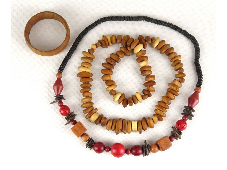 - 1 darab termésszerű, hosszúkás darabokból fűzött csat nélküli nyaklánc (Kerülete: 76 cm)