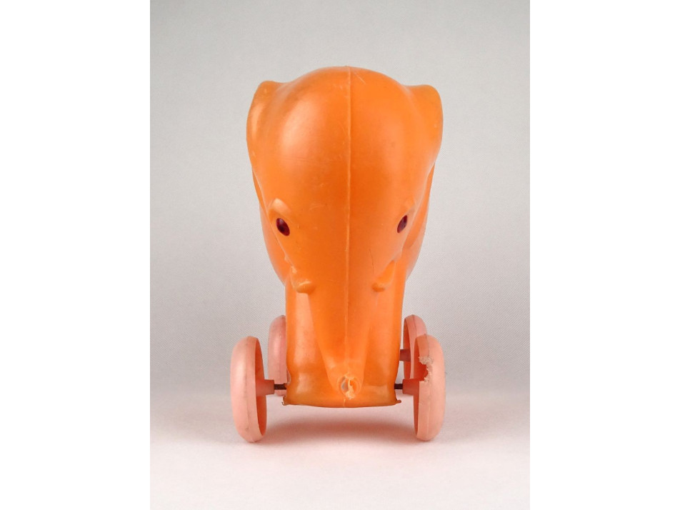 Régi, retro gurulós műanyag gyerekjáték elefánt az 1960-as, 70-es évekből. DMSZ fröccsöntött műanyag játék. Debreceni Műanyagipari Szövetkezet.