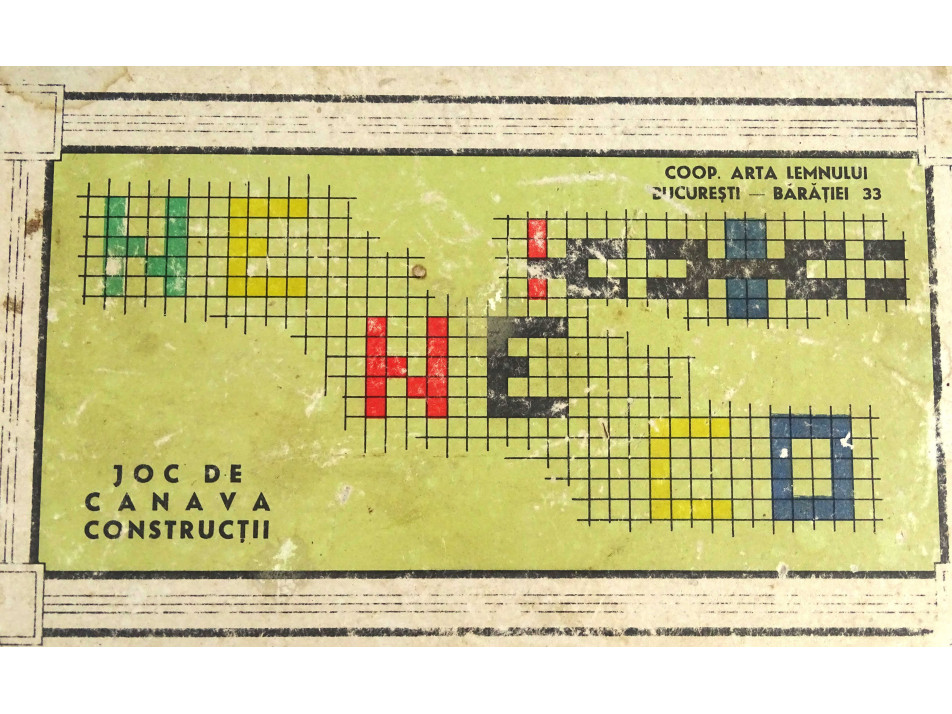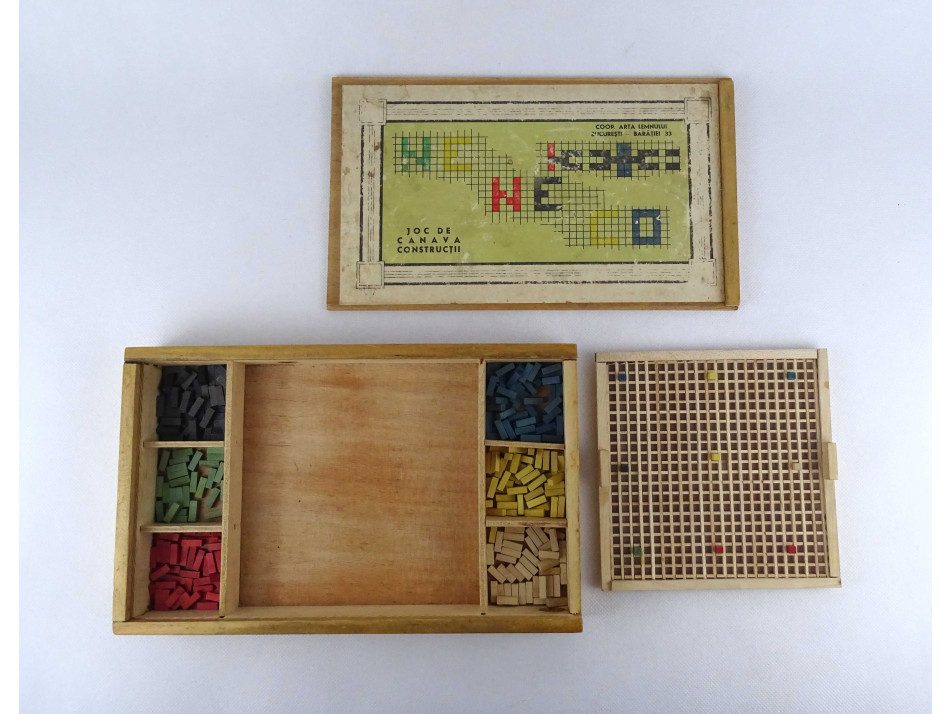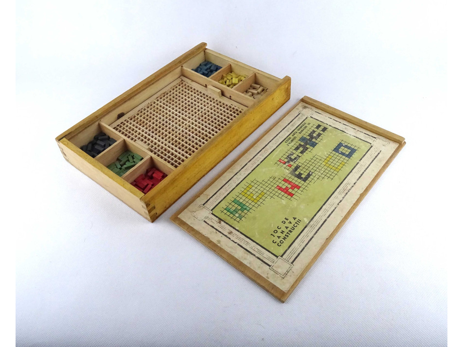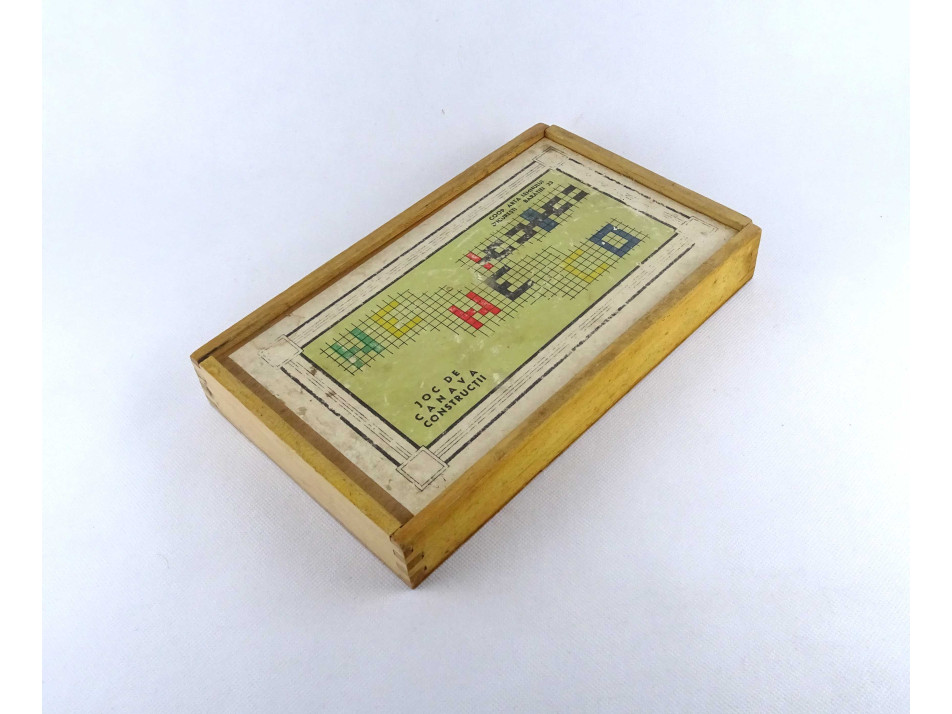Régi gyerekjáték fa képkirakó - építőkocka szett dobozában