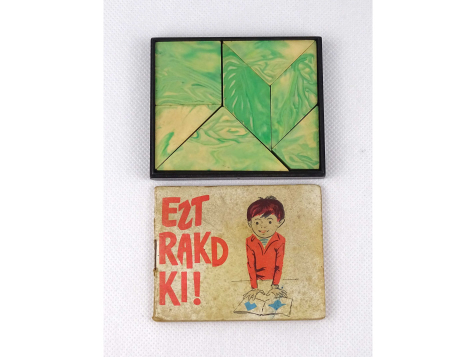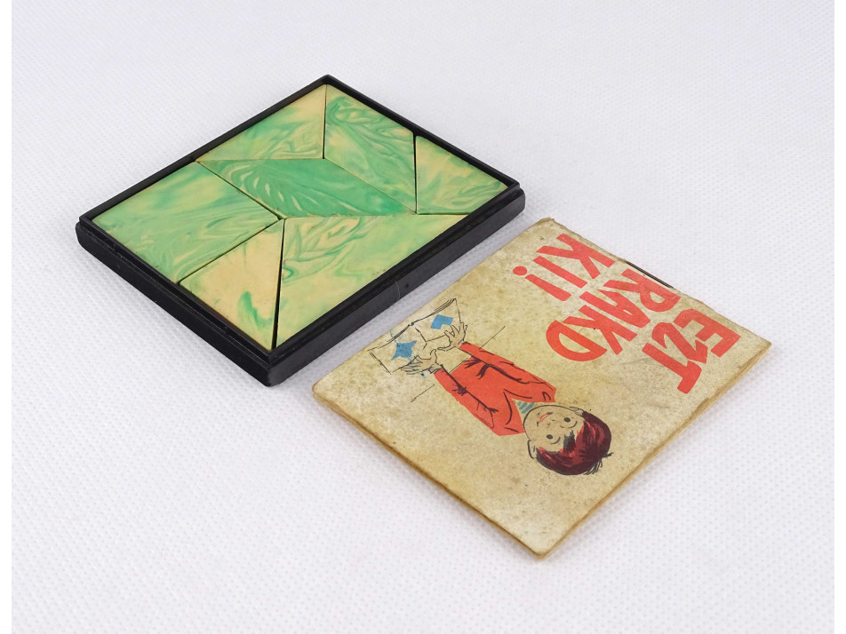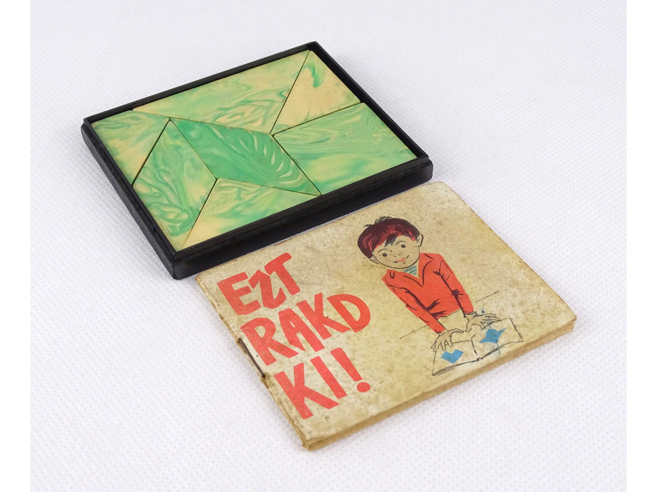 Eredeti dobozában található, régi, retró készségfejlesztő kirakó játék. A doboz átlátszó fedele hiányzik.