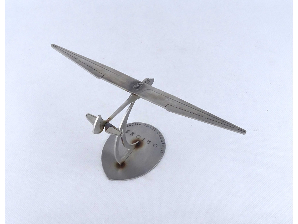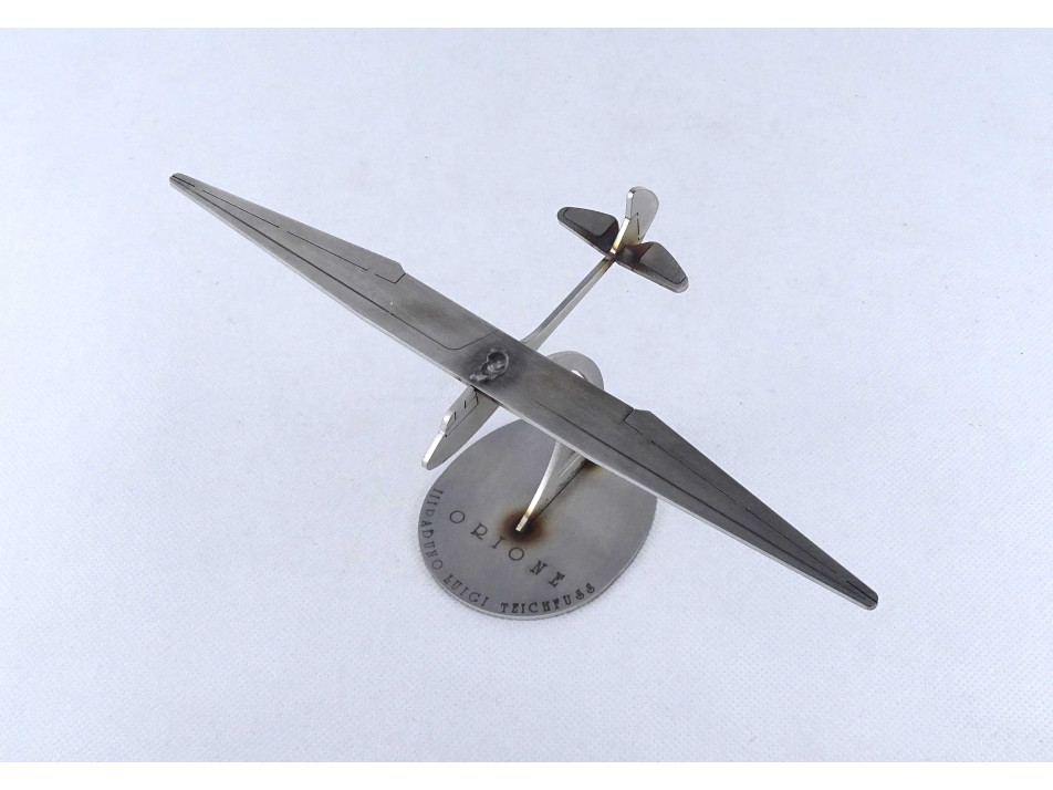 Régi, hibátlan állapotú, acélból készült olasz Teichfuss Orione vitorlázórepülőgép makett.