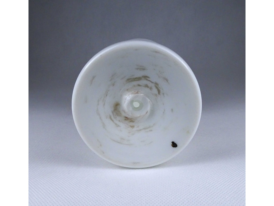 Régi, szép állapotú, tejfehér üveg petróleum lámpa, hibátlan cilinderrel. Az égőszerkezet és a lámpatest csatlakozásánál javítás, ragasztás nyoma látható.