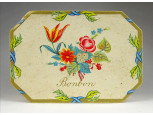 Régi, nagyméretű, ívelt tetejű, vékonyfalú, fa furnérból készült, levél mintákkal díszített, belül két részre osztott, egyszerű zárral rendelkező fadoboz, díszdoboz, kincses ládikó.