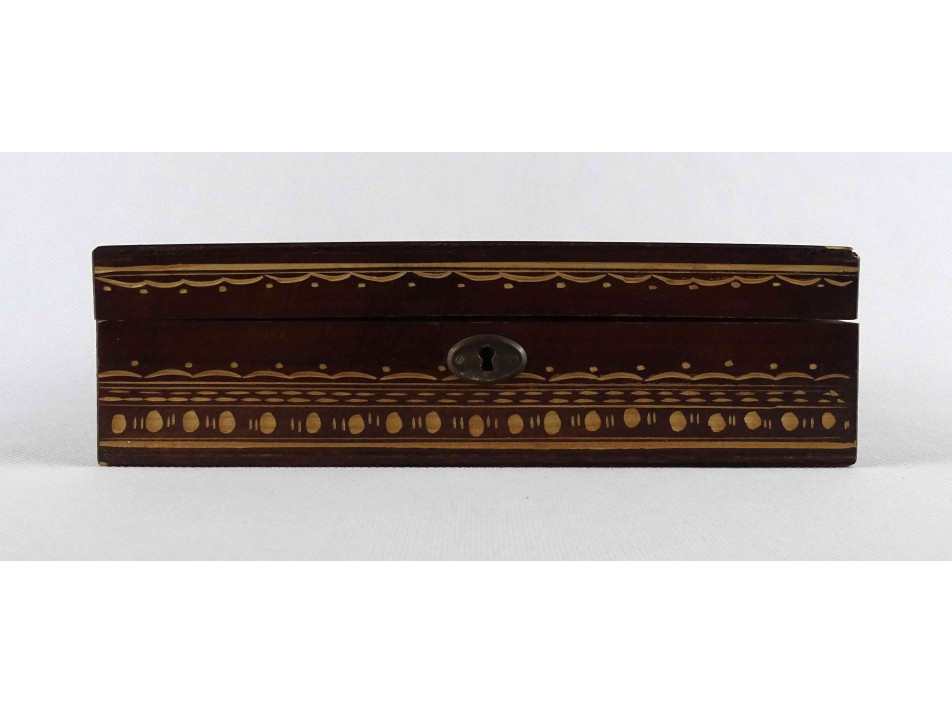 Szép állapotú, faragott, vésett díszítéses, zárral rendelkező fedeles kártyadoboz, fa doboz, kártya doboz vagy cigarettás doboz. A kulcs sajnos nincs meg hozzá.