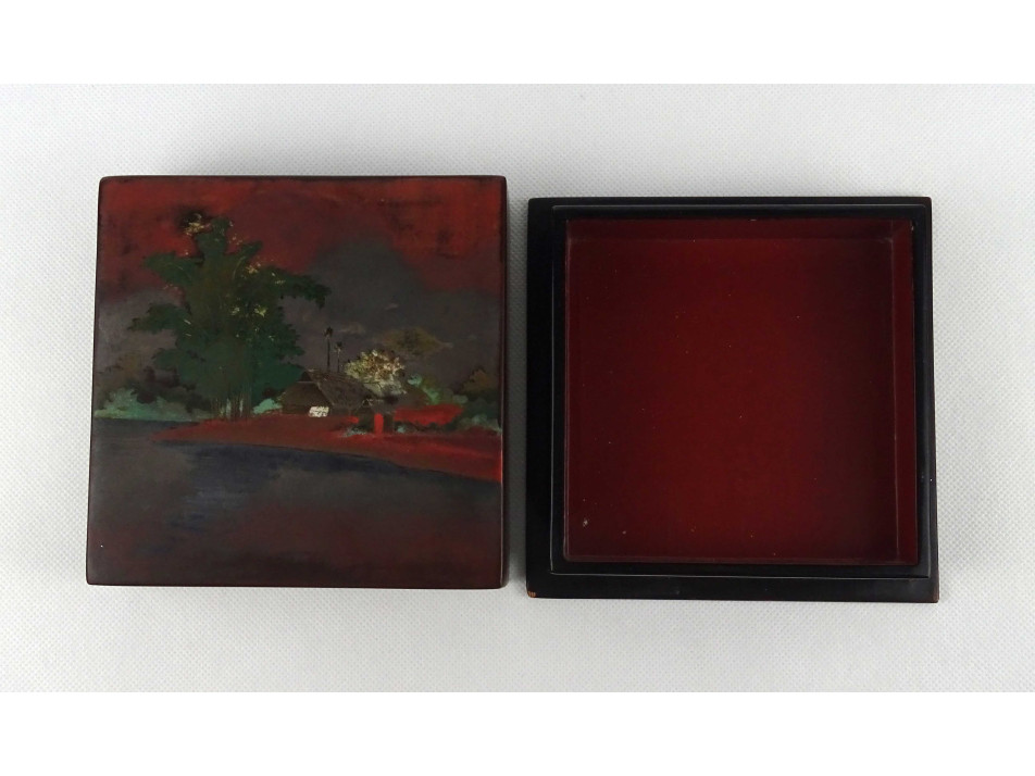 Régi távol - keleti festett lakk doboz 15 x 15 cm