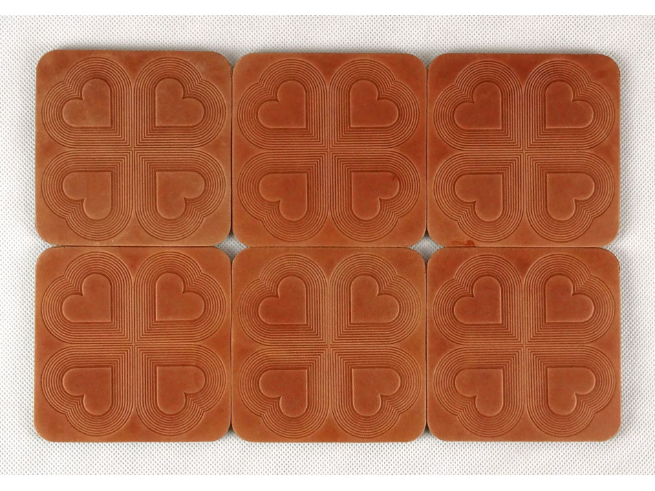 Retro szívecskés bőr poháralátét készlet 6 darab