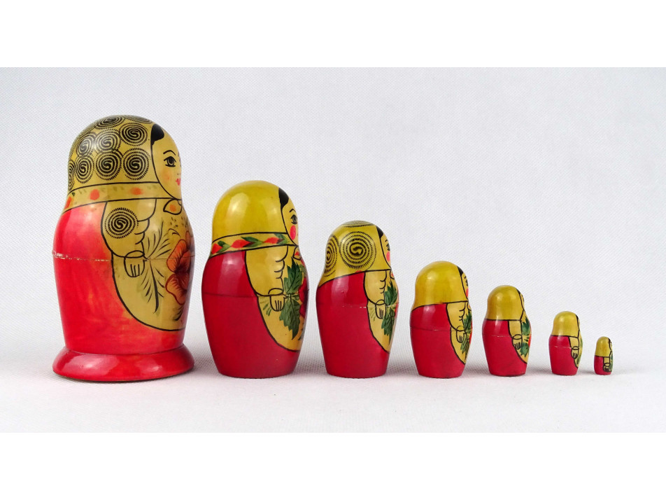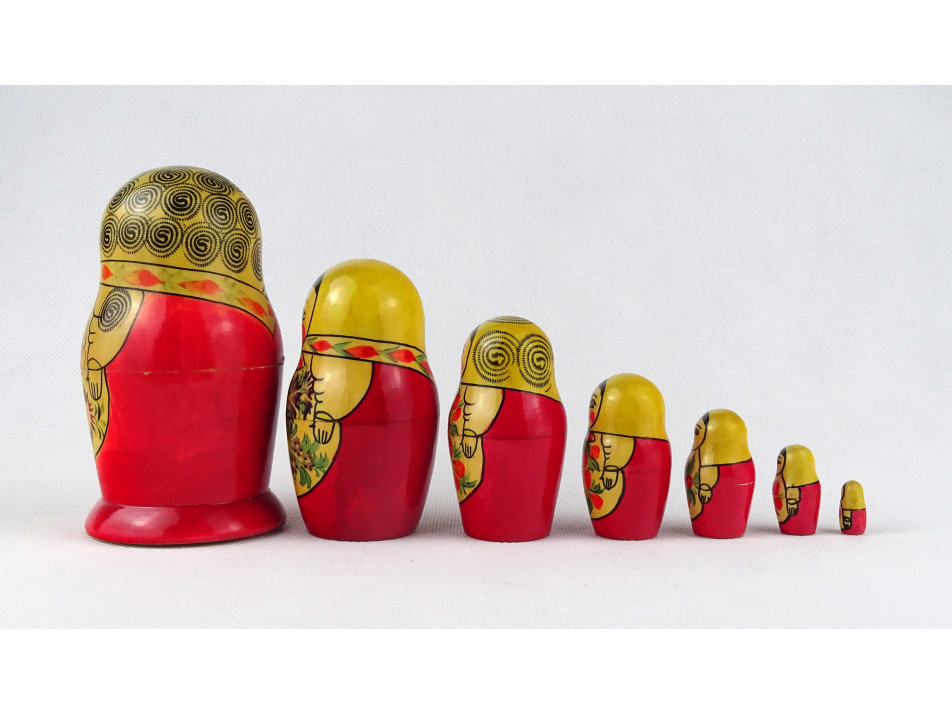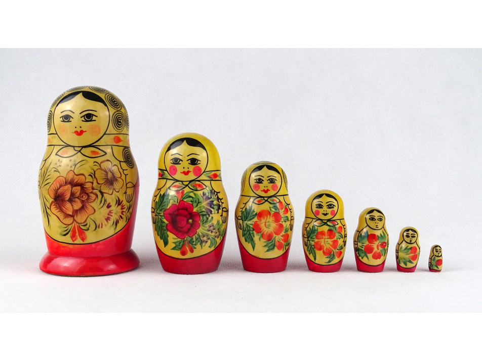 Régi nagyméretű hét darabos orosz matrjoska baba készlet 12 cm