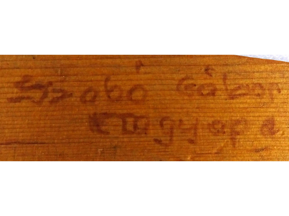 Régi, díszes, emberalakot ábrázoló fából faragott, festett levélbontó, íróasztali kellék.