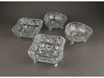 Régi csiszoltüveg lábas asztali kínáló tálka szett 4 darab