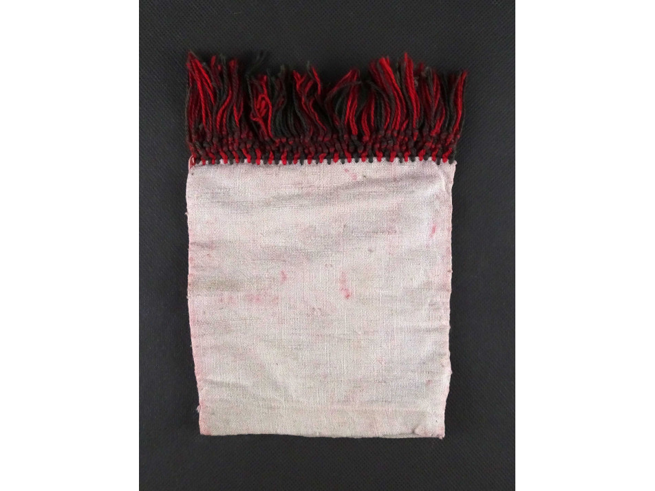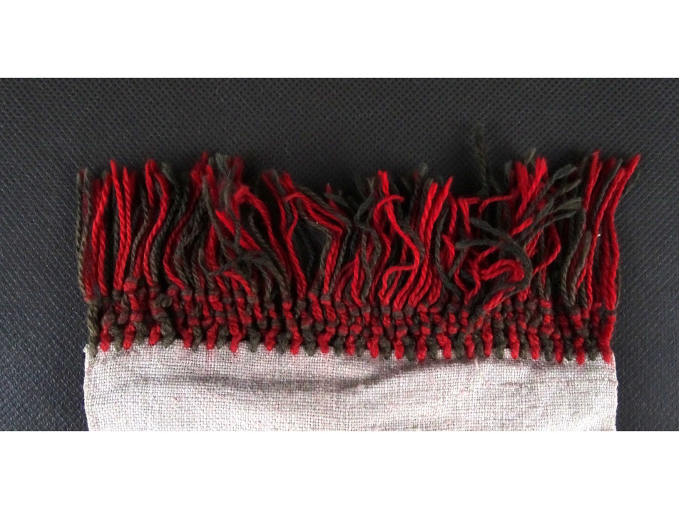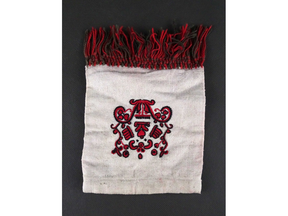 Régi, hibátlan állapotú, téglalap alakú, Buzsáki, fekete és piros mintával díszített, hímzett vászon tok, kis zacskó, szütyő. Kívül vastag szövésű vászon egy finomabb belső béléssel. Alul rojtozással díszített népi kézimunka, néprajzi tárgy.