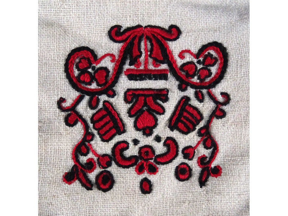 Régi Buzsáki feketével és pirossal hímzett vászon tok szűtyő 19 x 13 cm