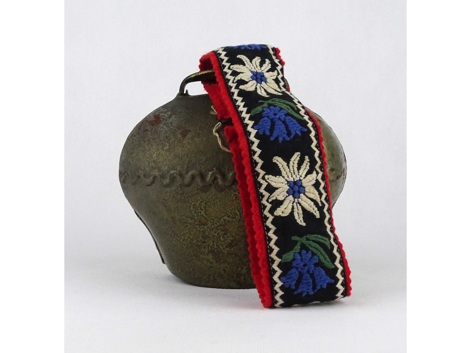 Régi, szép állapotú, birkák vagy tehenek nyakába való kolomp, hímzett virágmintás textil szíjon. Ma is kiválóan használható, de dekorációnak, állattenyésztési relikviákat gyűjtőknek ajánlott.