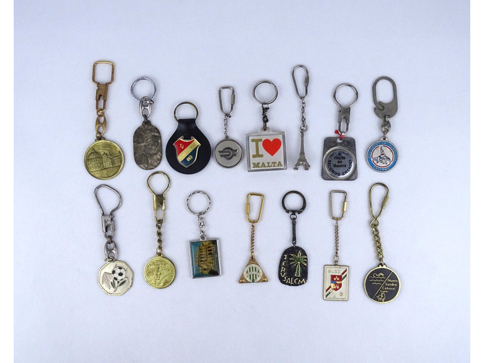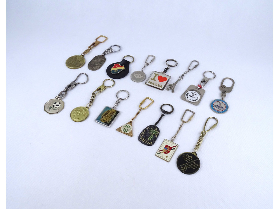 Régi, retró, szép állapotú, külföldi és magyar kulcstartó csomag. Sport eseményekhez, sportklubbokhoz kapcsolódó és souvenír darabok is találhatóak köztük. 15 darab egyben.