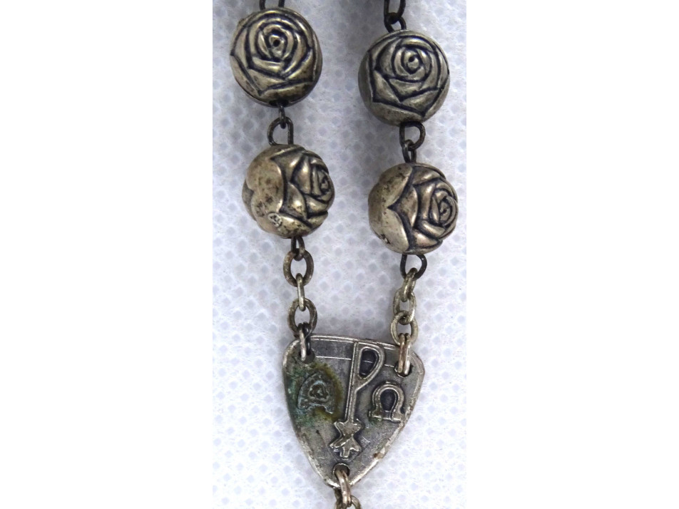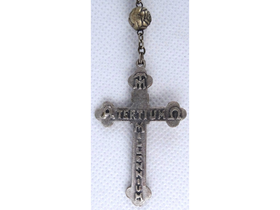 Régi TERTIUM MILLENNIUM ezüstözött fém olvasó rózsafüzér 57 cm