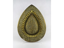 Fa táblára illesztett, jelzett vörösréz plasztikus vallási falikép, Mária portré Krisztus siratása. Falra akasztási lehetőséggel rendelekzik.