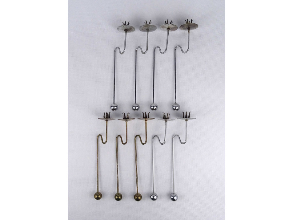 Régi, különleges, a karácsonyfa ágaira ültethető fém gyertyatartó karácsonyfadísz. 9 darab