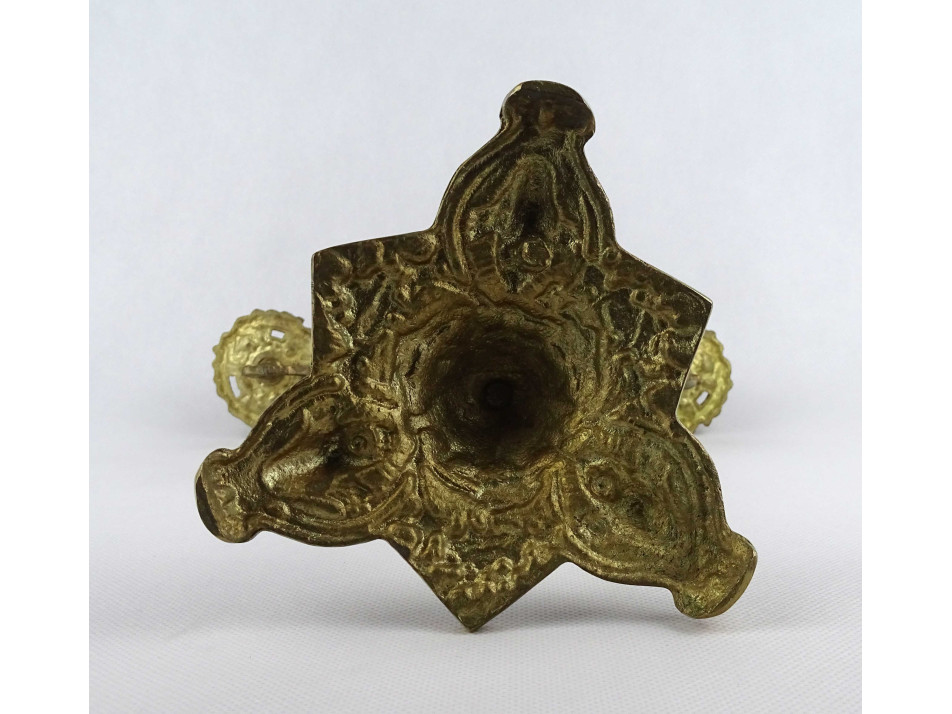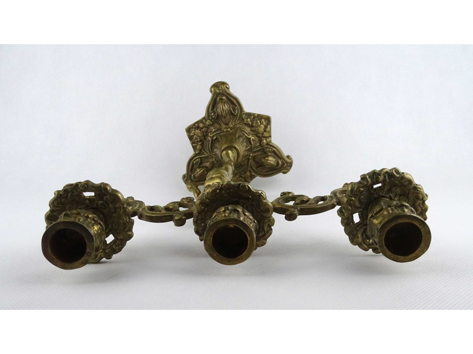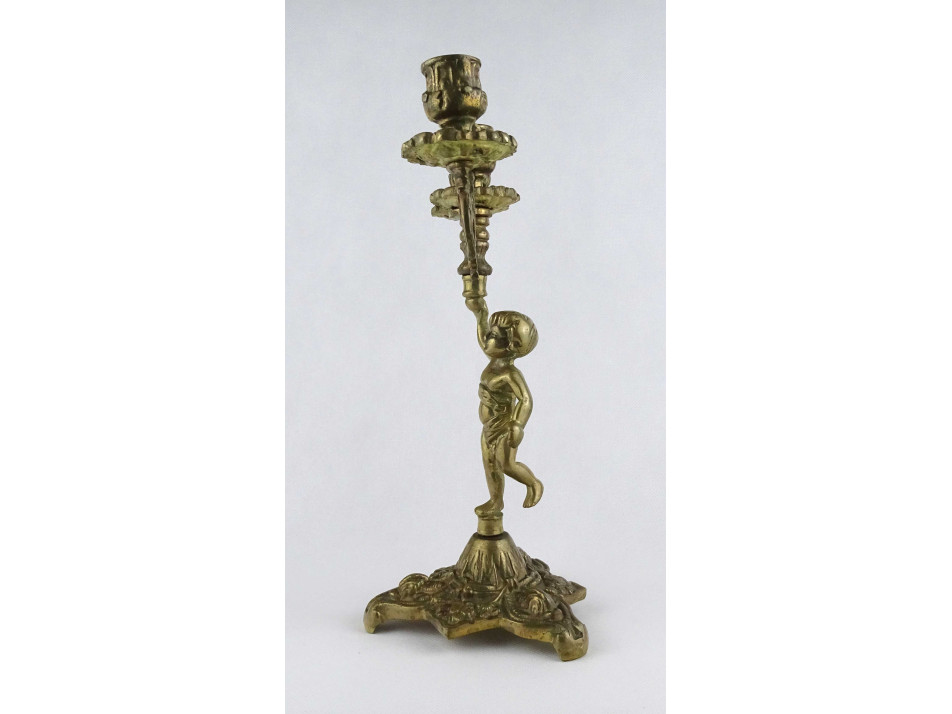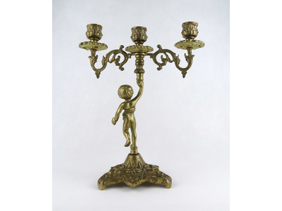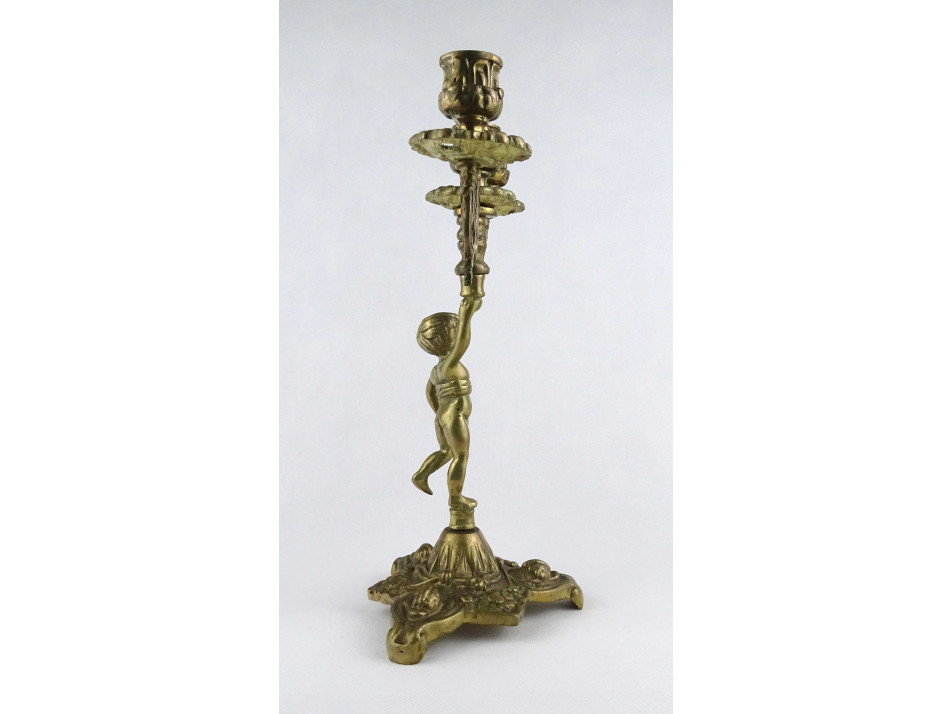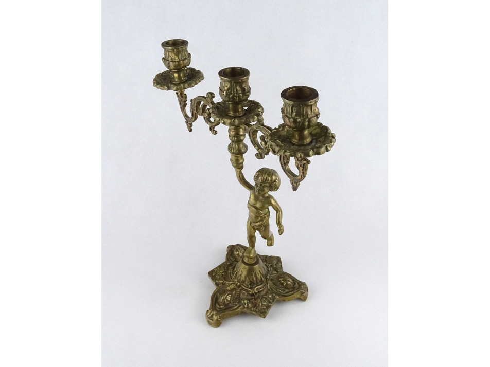 Régi, nagyméretű, díszes, három állásos, réz gyertyatartó. Teste egy puttót vagy angyalt formáz, amely a gyertyákat tartja. A gyertyatartó menetes, darabokra szedhető.