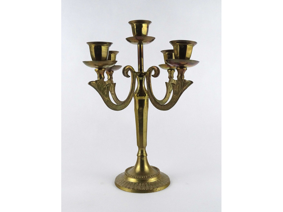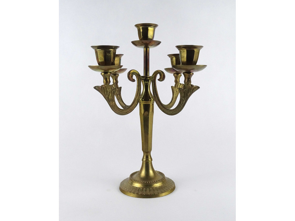 Régi ötkarú réz gyertyatartó 27.5 cm