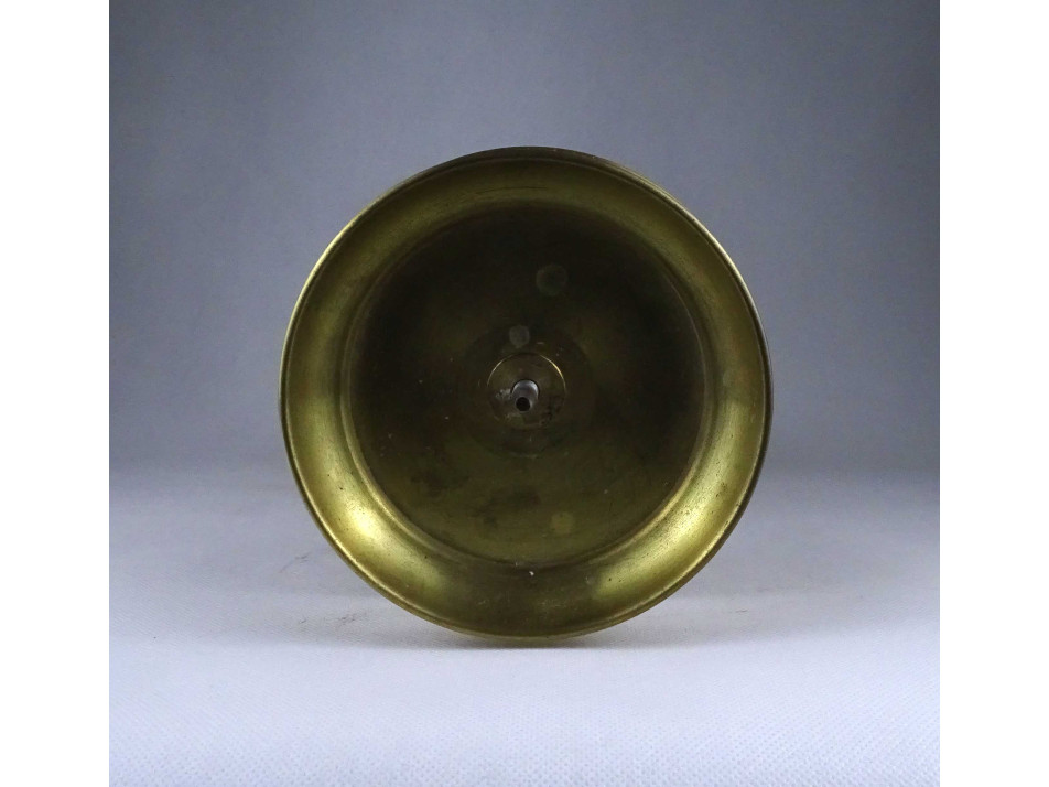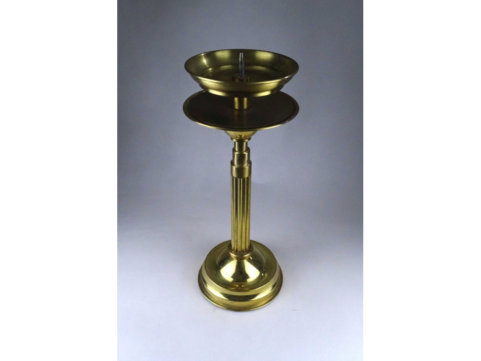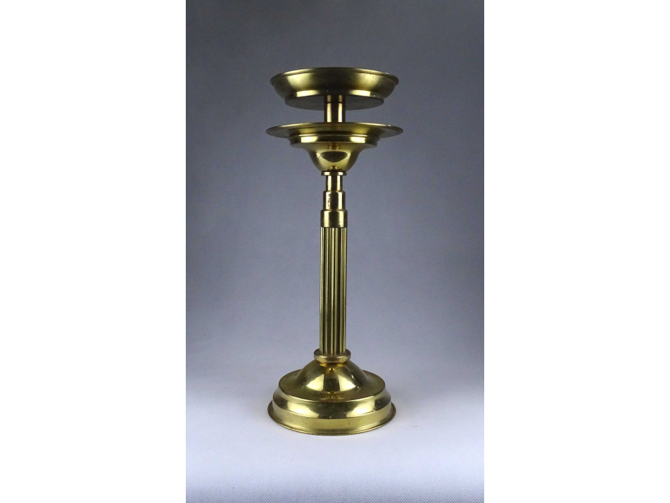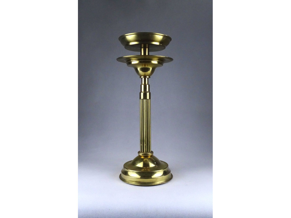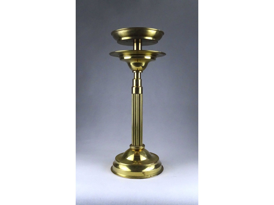 Nagyméretű modern bordázott szárú iparművészeti sárgaréz gyertyatartó 38.7 cm