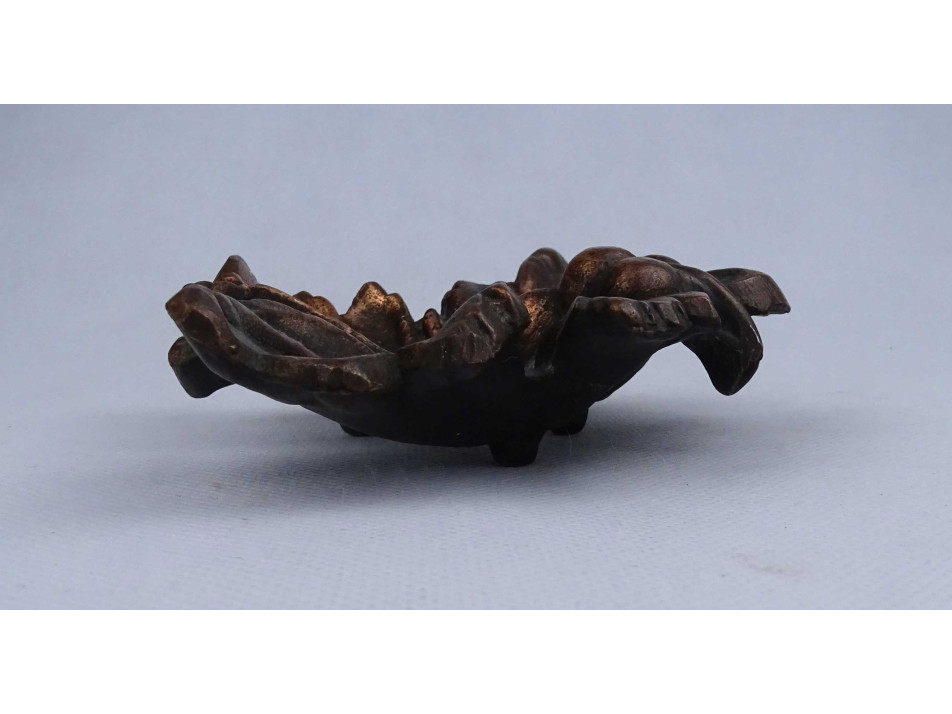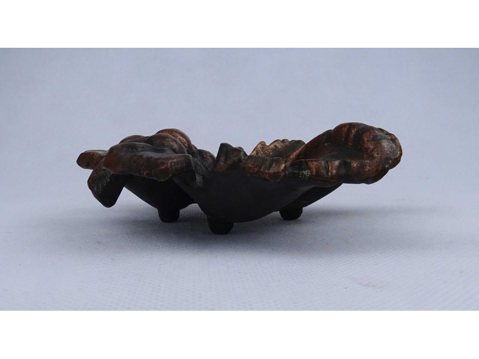 Régi szőlő levél alakú bronzírozott fém hamutál 15 x 13 cm