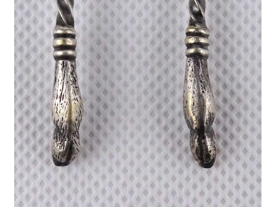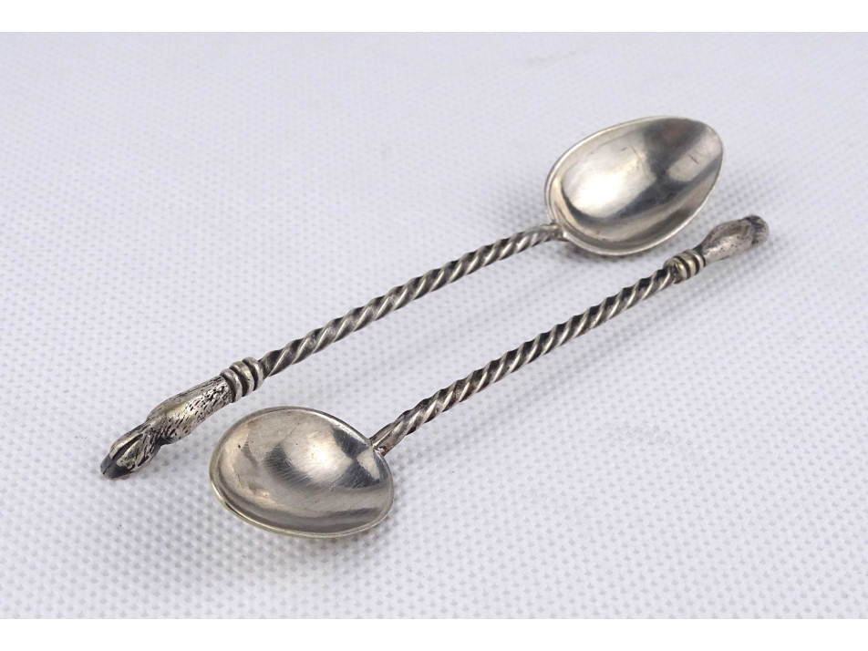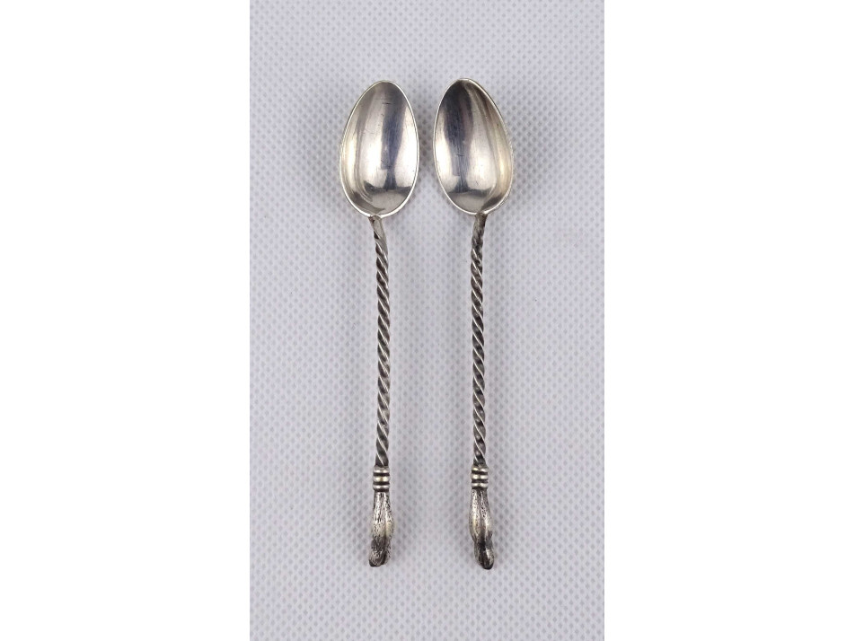 Antik díszes őzlábas nyelű, ezüstözött alpakka kiskanál pár