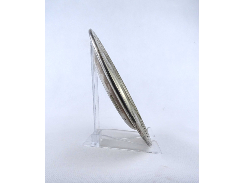 Régi, jelzett, ezüstözött alpakka lapos tányér, az 1900-as évek elejéről. Kávéházi relikvia. Ezüstözése kopottas. Alján jelzés: WELLNER