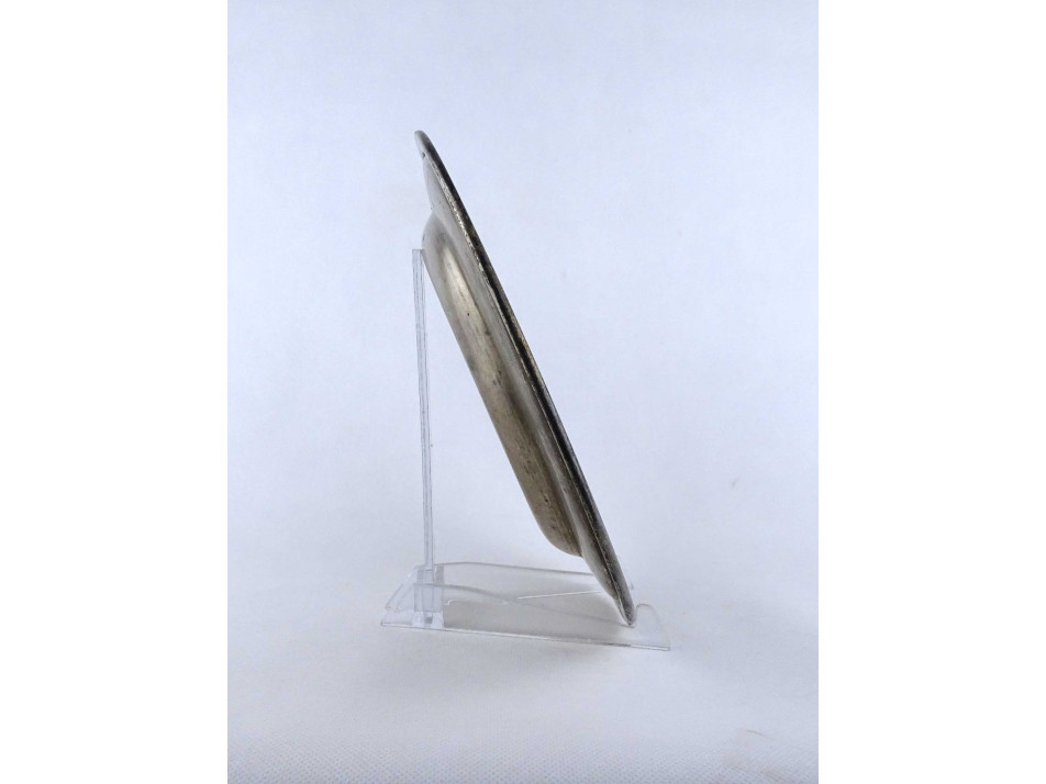 Régi, jelzett, ezüstözött alpakka lapos tányér, az 1900-as évek elejéről. Kávéházi relikvia. Ezüstözése kopottas.