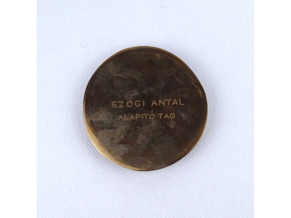 Régi, jelzett, egyoldalas plasztikus Gépipari Tudományos Egyesület bronz emlékérem eredeti díszdobozban. Hátoldalán adományozási szöveg látható.