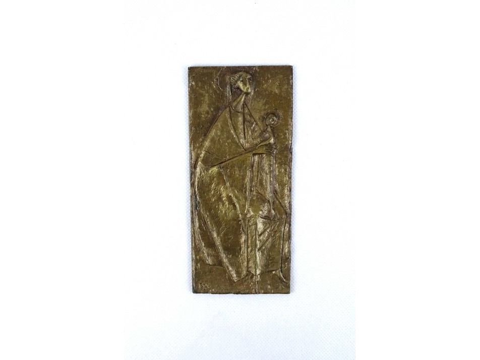 Erwin Huber : Mária a kis Jézussal bronz falikép emlékplakett 1988