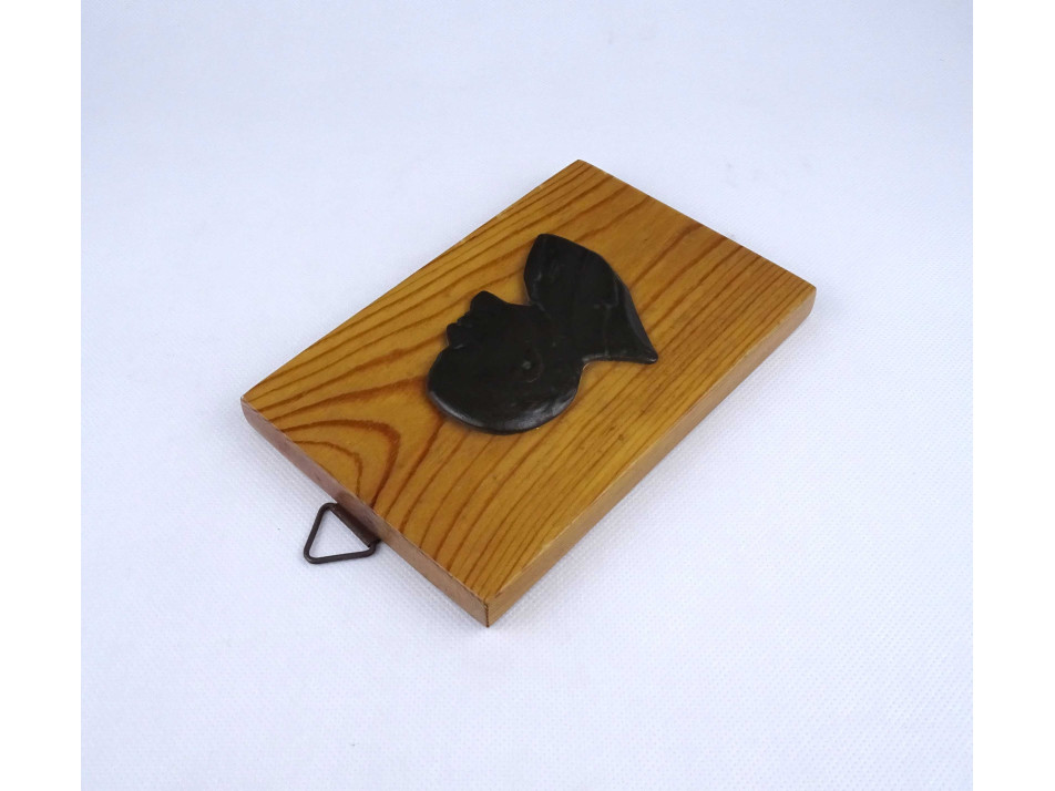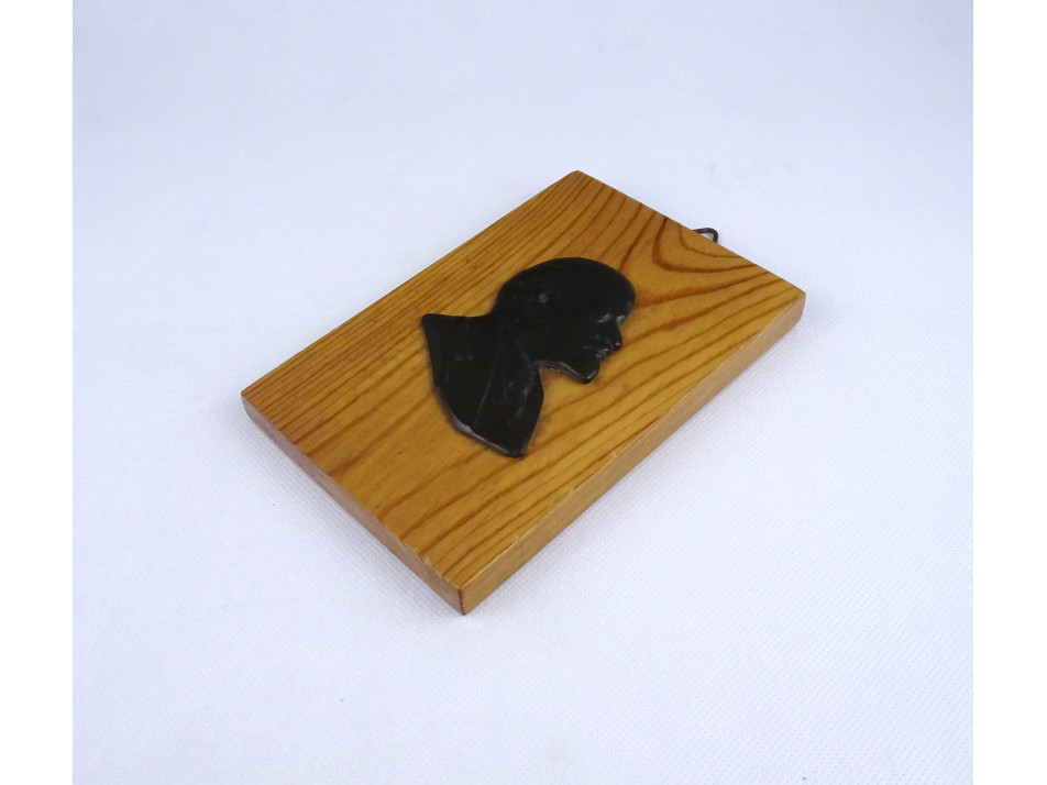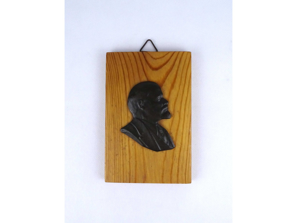 Fa talapzaton található domborműves bronz Lenin plakett, falidísz. Falraakasztási lehetőséggel rendelkezik.