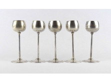 Régi iparművészeti üvegbetétes ezüstözött fém pohár készlet 6 darab