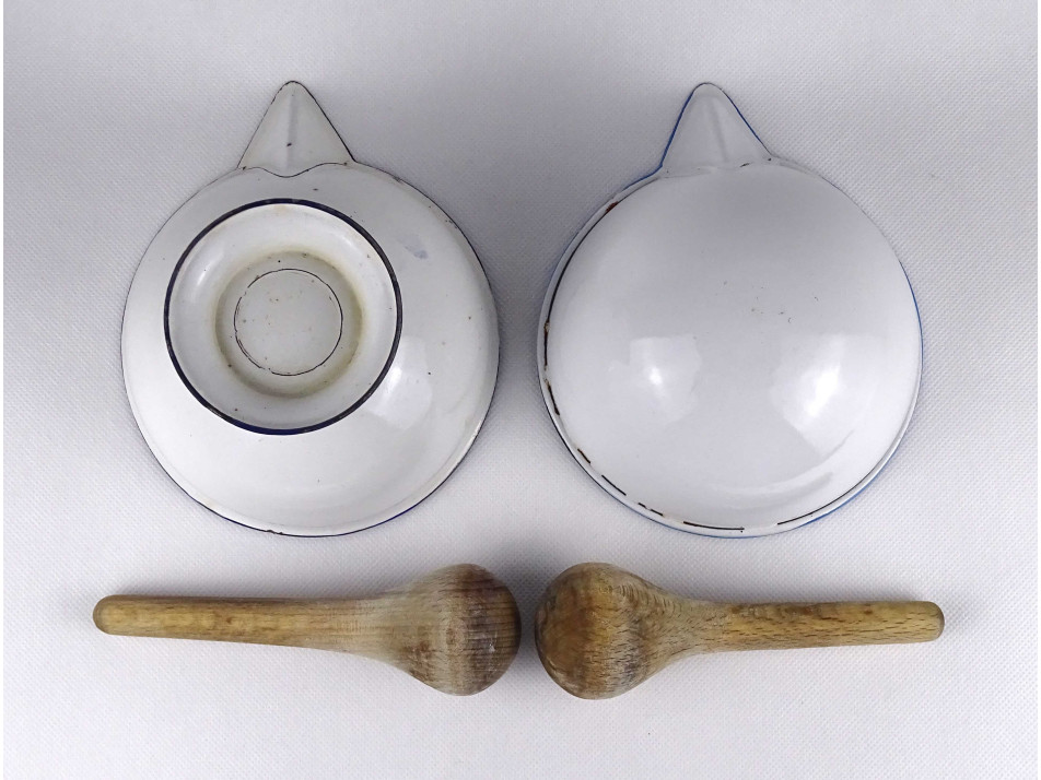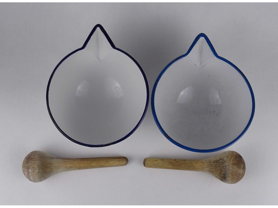 Régi zománcozott patika eszköz gyógyszertári keverőtál pár