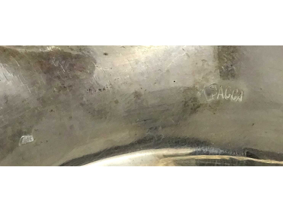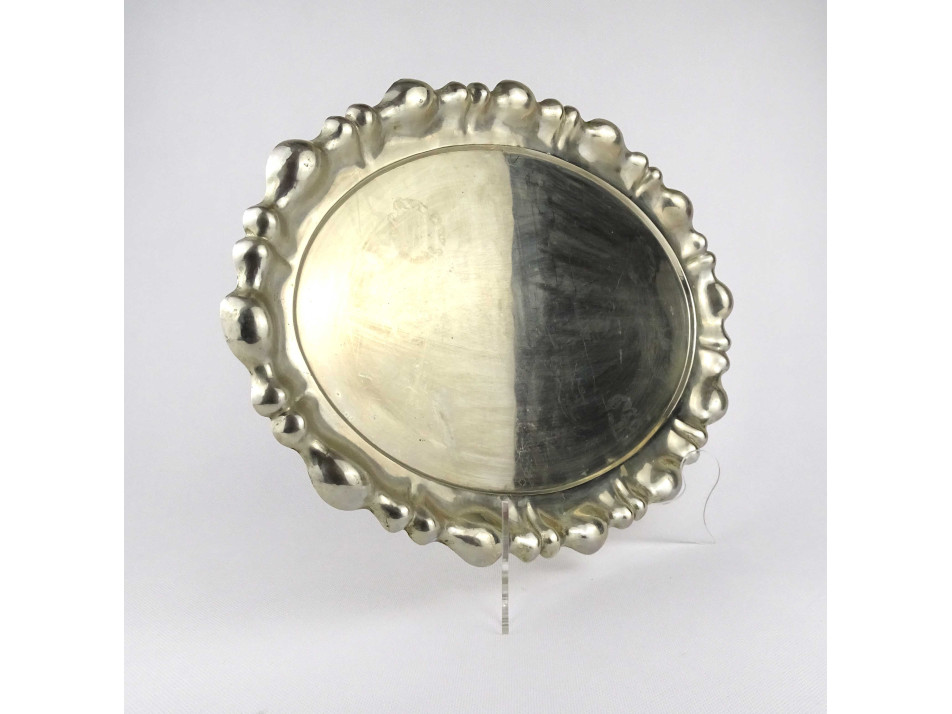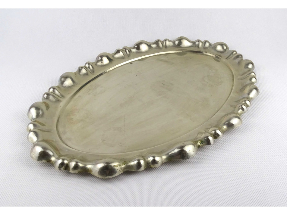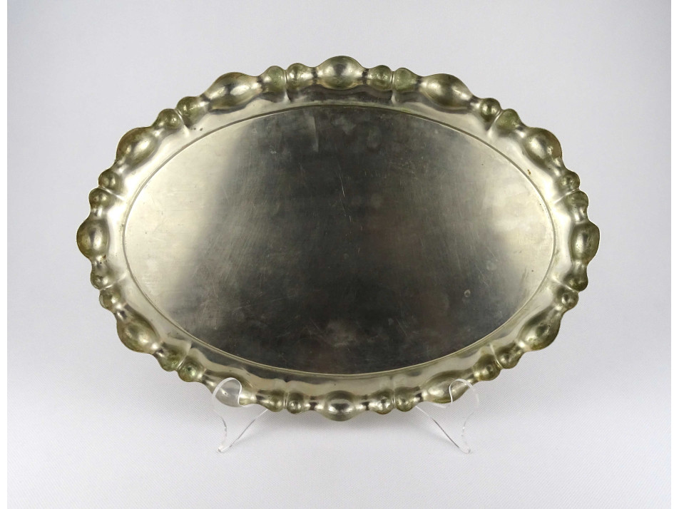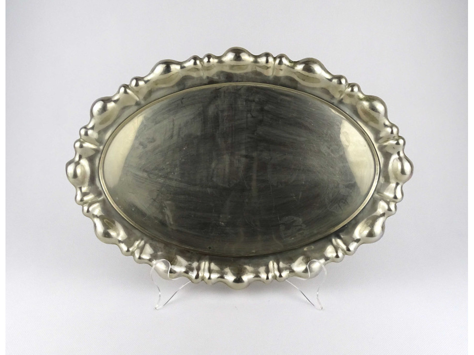 Régi nagyméretű, hólyagos, jelzett FŐÉ ovális alakú alpakka tálca 44.5 x 31 cm