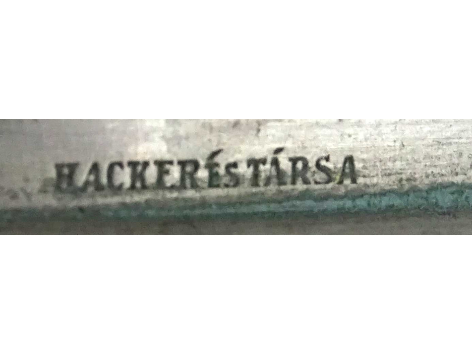 Régi jelzett HACKER vendéglátós alpakka tál tálca 27 x 21.5 cm