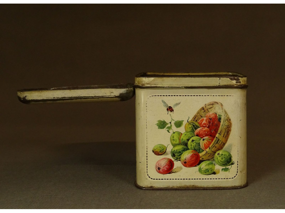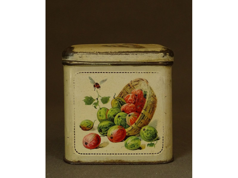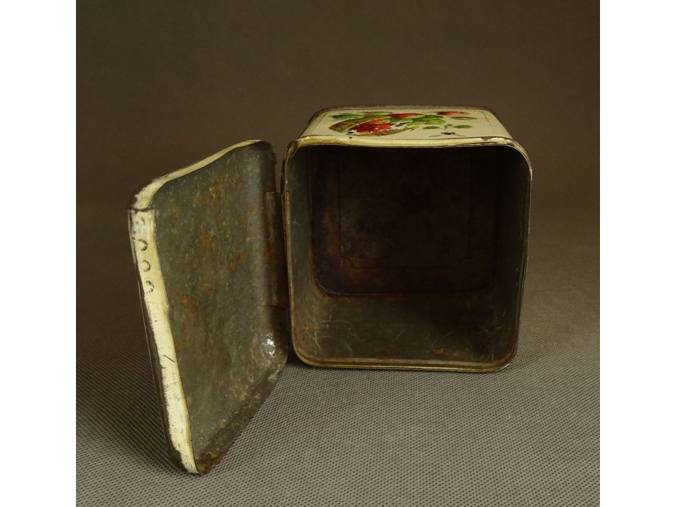 Régi, szép állapotú, szögletes alakú, cukros pléhdoboz.