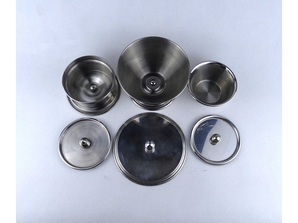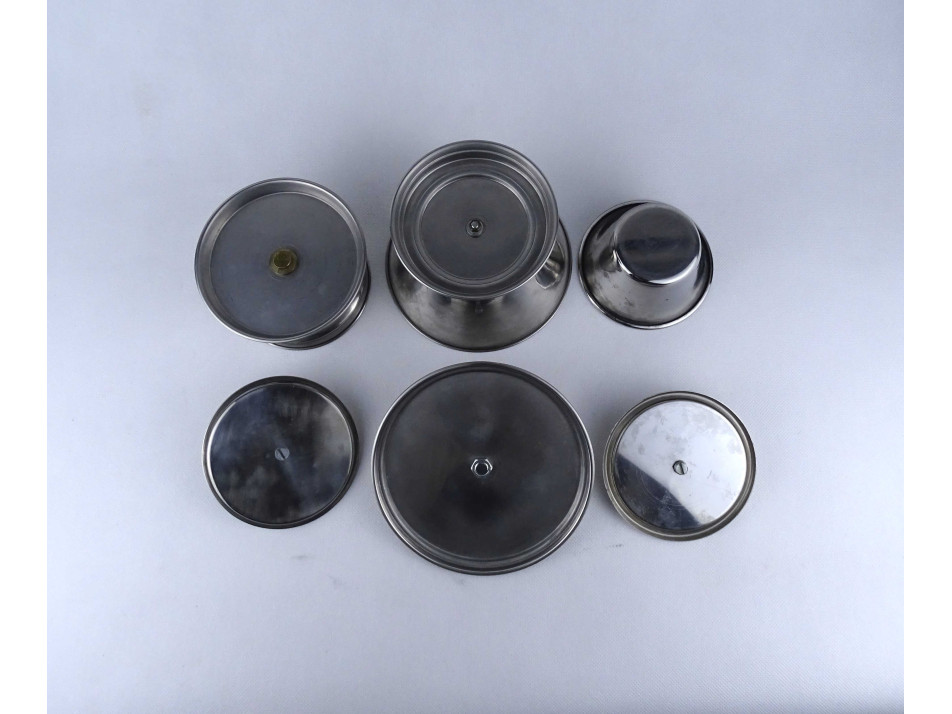 Régi fém doboz csomag - fedeles talpas cukortartó bonbonier szett 3 darab