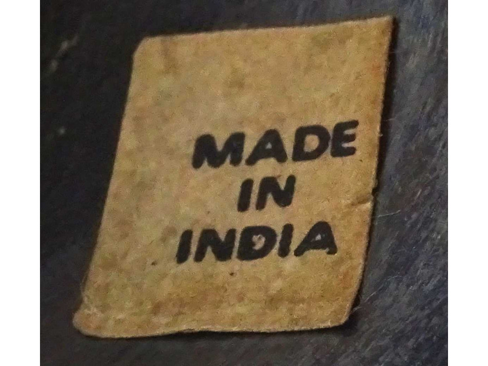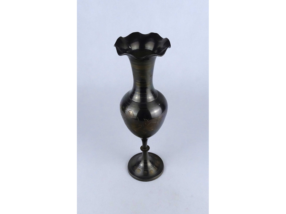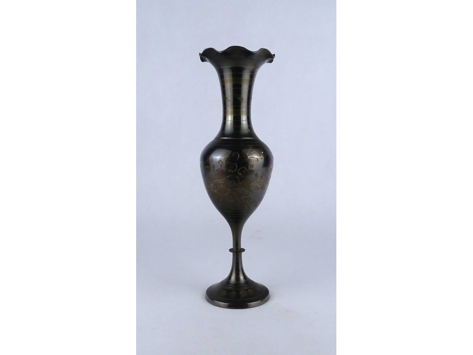 Régi, hibátlan állapotú indiai réz váza, díszváza. Feketítéssel és virágmintás vésetekkel díszített váza. Alján címke, rajta felirat: MADE IN INDIA