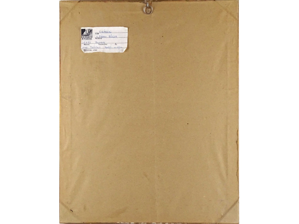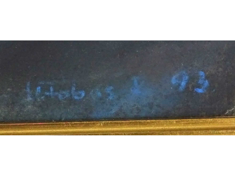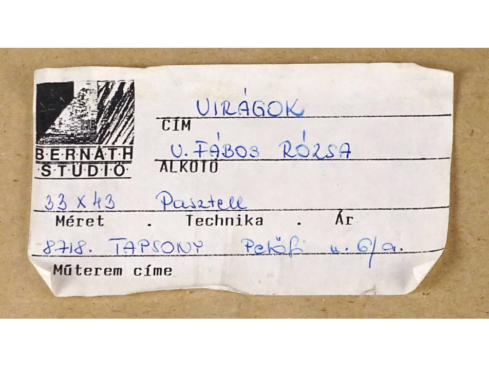 Papír pasztell kréta virágcsendélet, üveglap mögött, aranyozott keretben.