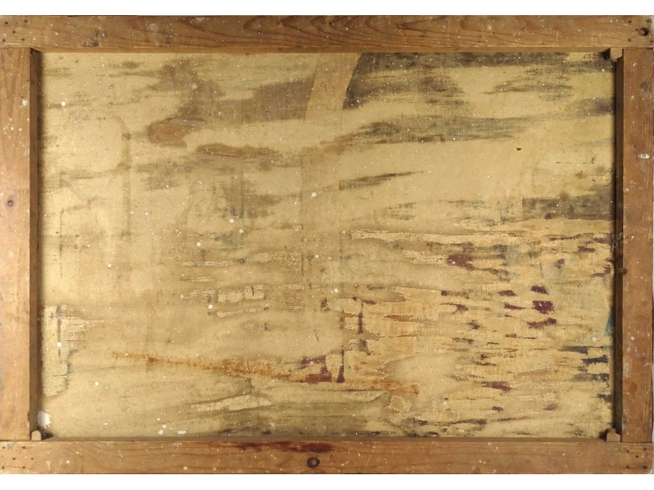 Munkácsy Mihály : Krisztus Pilátus előtt című festményének nagyméretű másolata. Szép állapotú olaj vászon festmény, keret nélkül. A festék több helyen is lepergett a vászonról.