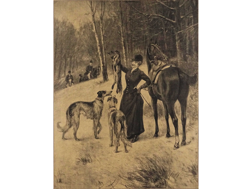 Mucharski : Die Siegerin vadászjelenet (A győztes) antik vadász nyomat 30 x 23 cm