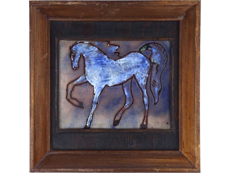 Magyar művész xx. század második fele. A fehér ló - tűzzománc kép 18 x 18 cm