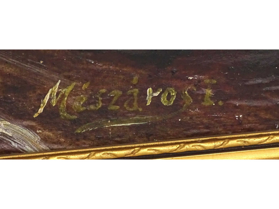 Régi, jelzett, olaj vászon festmény, hibátlan állapotú, díszes, aranyozott keretben.