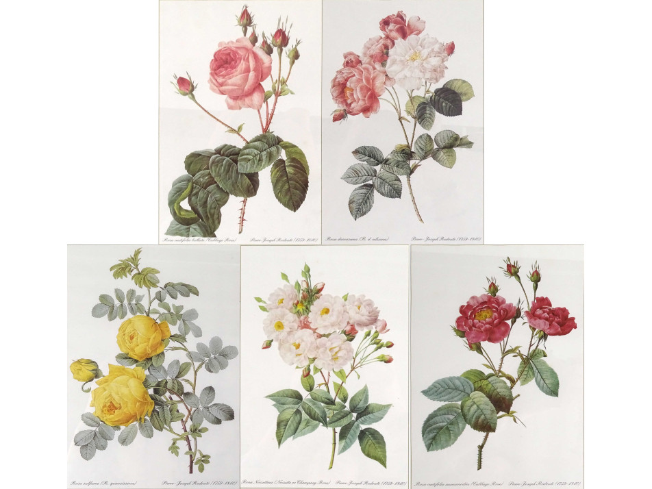 Botanikai képsor rózsákat ábrázoló színes nyomat 5 darab 31.5 x 23 cm